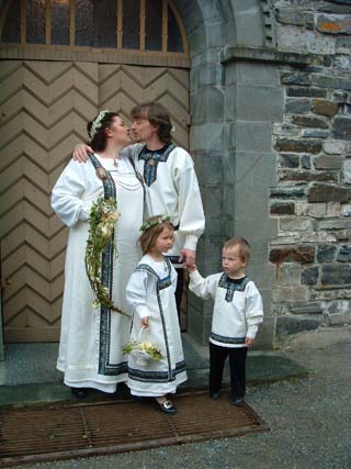 Det ble et litt spesielt bryllup på mange måter. Bryllupsklærne vi hadde på var inspirert fra vikingetiden. Jeg hadde lurt organisten til å spille Toccata und Fuge i D-moll av Bach, og det ble noe annet enn de vanlige bryllupsmarsjene.